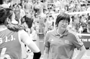 当地时间6月1日,中国女排主教练郎平(右)在比赛中略显无奈。当日,素有“小世界杯”之称的2014年瑞士女排精英赛在蒙特勒落幕。在季军争夺战中,中国女排苦战五局不敌俄罗斯,最终中国队获得了本届瑞士精英赛的第四名。