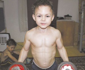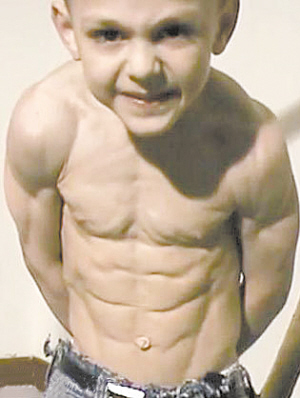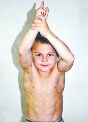 罗马尼亚的9岁男孩Giuliano和他的弟弟2岁开始就随父亲去健身房锻炼,如今的他已长成一名“肌肉型男”,拥有令许多成年人望尘莫及的强健腹肌和结实臂膀。
