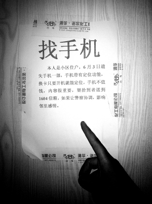 东西丢了张贴寻物启事,内容一般为“请捡到者尽快联系失主,定重谢”此类内容。可记者昨天在七一路一小区见到的“找手机”启事,内容却相当另类。口气“强硬”,颇为雷人。