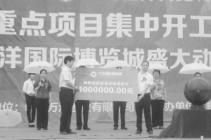 本报讯 6月16日,郸城县重点招商引资20亿元项目万洋国际博览城动工。在动工现场,万洋集团捐资1000万元,助力郸城教育事业发展。