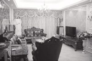 新居在装饰上,体现了有所为有所不为。除了主卧采用墙布装饰、餐厅和电视背景墙采用砖石之外,新居大部分的墙面都采用最普通的白墙。但一楼地砖及二楼地板的用材,花了十几万元,大厅吊灯数万元。全屋红木家具,也是一大亮点。值得一提的是,大厅一些陈列柜采用了现场木作,由于色彩把握得好,与红木家具并没有明显的色差。