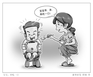 为让孩子好好吃饭,一些家长喜欢以电子产品为条件,让孩子边吃饭边看动画片。南京市6岁的童童在这样的喂养方式下,一年来确实变得白白胖胖,但体检的时候却被告知“微量营养素”摄入不足。南京市妇幼保健院儿童保健所专家建议,父母应限制孩子就餐时使用电子产品,更不能以此为诱惑,来刺激孩子就餐。