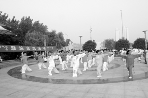 6月22日,2014年市直站点健身气功联合交流展演在大庆路桥南滨河健身广场举行。市直42个健身辅导站的160多人进行了八段锦和导引养生功十二法的交流展演。晚报记者 陈星羽 摄