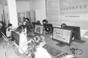 6月25日上午,记者在荷花办事处前王营社区服务中心看到,这里的“红色网吧”共配备有8台电脑,8名居名正在这里上网(如图),他们有的在玩益智游戏,有的在视频聊天,还有的在看红色电影。