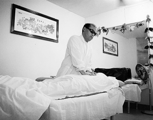 初进按摩院,会产生一种“名不副实”的感觉,因为这个面积100平方米左右的“院”,办公场所占去了大概三分之一,生活场所又占去了大概三分之一,真正用于经营的针灸推拿室、理疗牵引室、足疗刮痧室里只有几张床——称之为“店”也许更合适。