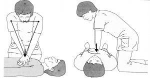 第二步:按压胸廓30次,频率为每分钟100次,每秒将近2次。留意每次按压须压低四五厘米,不要完全按压左侧肋骨,否则肋骨断裂易刺破心包,致人死亡。
