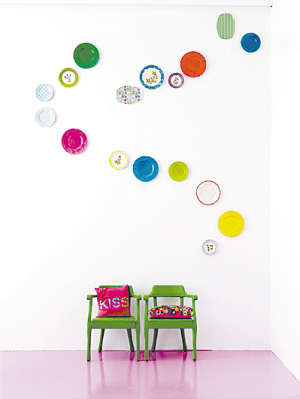 墙面太空旷,点缀一些缤纷的挂盘,摆出自己喜爱的造型,装饰出一面有特色的墙面,搭配一两件颜色漂亮的家具,不但弥补了空空的白墙留下的遗憾,还能提升趣味,个性十足。