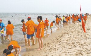 6月27日,“快乐水手 逐梦北京”夏令营第一站,小记者们来到了海滨城市——秦皇岛。孩子们一下车,便在老师带领下来到海岸边,在海风的吹拂下聆听着海浪的拍打声。许多小记者掩饰不住兴奋,穿着运动鞋跑进海水中追逐嬉戏。一些女孩子在海水中捡贝壳,在岸边堆沙丘,还有的小记者纷纷掏出手机、相机拍照留念。在沙雕大世界景区,孩子们感受沙雕魅力,体验刺激的滑草、射箭,欣赏鳄鱼表演等,让孩子们流连忘返。