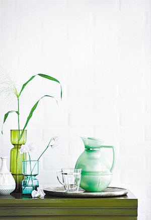 薄荷绿总让人感到清凉冰爽,夏天用些薄荷绿色的装饰品也会给家带来凉爽感,例如绿色的小家具、布艺饰品、玻璃器皿、装饰画等,都能起到给视觉降温的效果,另外淡淡的绿色也有平定心情、舒缓情绪的作用。