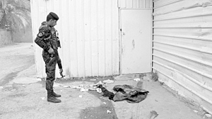 ▲7月13日,伊拉克巴格达,警察在发生枪杀案的现场勘察。
