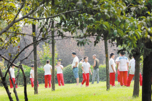 近日,在周口人民公园,一家武术培训中心的数十名学员在教练员的带领下在公园草坪上训练,践踏草坪(如图)。盛夏以来,市民纷纷走出家门,前往市区多家公园避暑休闲。人们在愉快游玩的同时,肆意践踏草坪、花卉的不文明现象也随处可见,这些不文明行为成为公园里不和谐的“风景”。