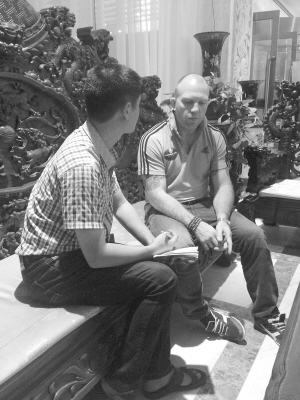 安德森告诉记者,他喜爱搏击运动,平时喜欢看中国的功夫片,他有个中国名字叫李小龙。