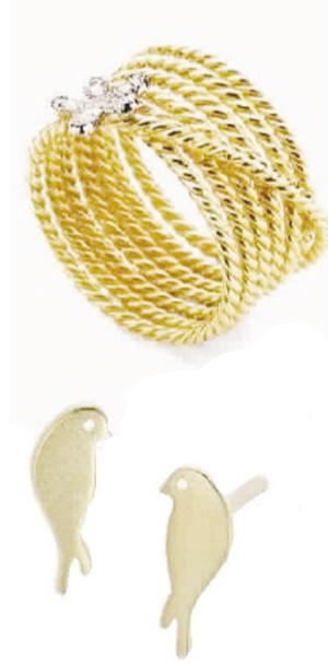 不再仅仅是爱心或LOVE字样,今年饰品的设计元素变得越发多样而别致。在设计中加入了代表着同盟与结合的知更鸟元素,无论是蝴蝶戒指还是小鸟耳钉,都十分浪漫有型。仿佛在唱着那首多年前的情歌,“树上停着一只,一只什么鸟……”
