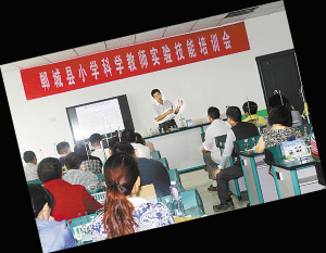 为提高全县小学科学教师实验操作技能和学科专业水平,郸城县教体局利用暑期对全县部分小学科学教师进行实验操作技能培训,要求受训者做到“四有两签一过关”。“四有”即上课时学员要有科学课教材、教学用书、专项培训资料、听课记录,由专人对学员的学习材料进行检查;“两签”即每场签到签退,严格上课纪律;“一过关”即培训结束之后,所有参培教师都要接受严格的综合考试,培训不合格者下期继续培训。晚报记者 徐松 摄
