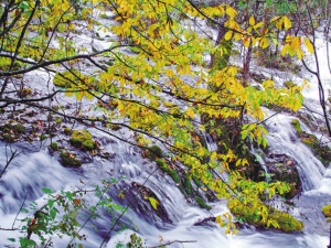 秋天是九寨沟最灿烂的季节。因为斑斓的红叶,五彩池开始呈现出真正的五颜六色,“童话世界”得到最为充分的诠释。飞瀑、急流,加上点缀其间的古老原始村寨、栈桥、磨坊,组成九寨一幅幅充满灵气而迷人的画卷。