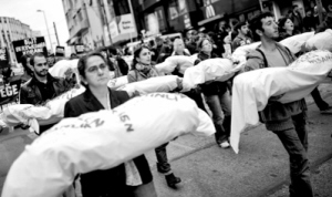10月11日,土耳其伊斯坦布尔,多名示威者抗议ISIS袭击叙利亚边境重镇艾因阿拉伯。土耳其境内有库尔德人约1500万。过去3天以来,在库尔德人聚居的东南部地区发生示威冲突,至少33人死亡,包括两名警察。