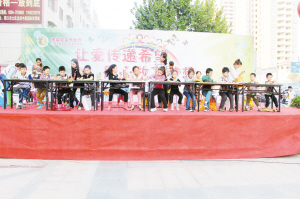 近日,由周口儿童大世界举办的“让爱传递希望”少儿绘画比赛吸引了160名少儿参加。孩子们用手中的画笔勾勒出生活的美及家人的幸福生活。图为小朋友们在现场作画。晚报记者 摄