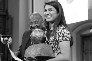 11月18日,在荷兰海牙,妮哈·古普塔(前)被授予2014年国际儿童和平奖。