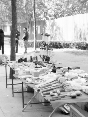 “难道卖弹弓和用弹弓打鸟就没人管吗?”黄文清说,在滨江国际酒店附近的滨河路上有人卖弹弓,而且还有弹弓所用的钢珠。记者在滨河路西段看到一个卖弹弓的小摊(图2)。摊主讲,这些弹弓有合金的、合金与木头结合的、还有木制的,价钱在20元至100元之间,买弹弓还将附赠一包钢珠。如果买钢珠,一大包的价钱是40元。