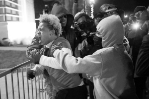 示威者得知弗格森枪击案涉案警察被免于起诉的消息后表达不满
