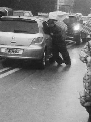 不久,接到报警电话的两位民警驱车赶到,想把“拦车哥”带走。由于“拦车哥”挣扎不从,最终民警未能把他带上车。“他是一名智障患者,邻居讲,他没有家人。警方曾就其强行要钱的事情处理过一两次,但最终也解决不了问题。”出警的史警官说。
