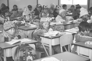 12月3日,学生们在四川康定县新都桥小学搭建的板房内上课。