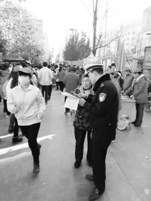 仪式结束后,志愿者们来到五一广场及川汇区人和办事处文昌社区为过往行人开展了多种形式的志愿服务。晚报记者 张燕 实习生 何渊博 摄