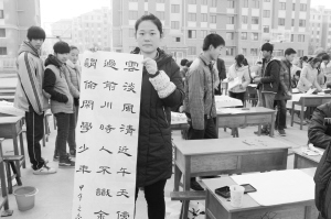 赛场上,师生们聚精会神,精心书写,或工笔细楷秀硬笔,或挥毫泼墨展书艺;下至二年级小学生,上至退休老教师无不热情蓬勃,争墨竞艺;行楷隶篆书体多样,精彩纷呈,一幅幅或隽秀整洁或苍劲古雅的书法作品,赢得啧啧称赞。