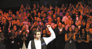 5个英国斯诺克锦标赛冠军 职业生涯第27个排名赛冠军 “火箭”再次升空 据新华社伦敦12月7日电英国斯诺克锦标赛7日在约克的巴比肯中心上演了一场经典决战:“火箭”奥沙利文在以9∶4领先的情况下,被特鲁姆普以9∶9扳平,最后“火箭”通过决胜局以10∶9险胜,第五次赢得冠军。 决赛采取19局10胜制,奥沙利文开局顺利,一度以5∶1领先,但20