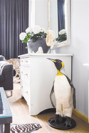 圣诞老人有鹿,你有什么?寒冷冬日,不妨让企鹅来陪伴。白色的边柜大气稳重,盛放的花朵在“肚圆”的花瓶里美丽又恰当,这时一只逼真的企鹅装饰立在柜子边是那么可爱,让整个空间变得不再孤单和冷漠,伴着窗外漫天的雪花,南极来的小伙伴也带来了冬的味道。