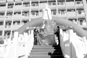 为传承祖国的优秀文化,培养学生爱国孝道的儒家思想,周口新星学校投入资金数十万元,特在教学楼前设立圣坛,并率先在学校推广国学,让孔子思想恩泽新星学子。12月20日,周口新星学校举行孔子像揭幕仪式,全校师生向圣人孔子行祭拜礼。