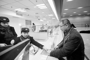 12月24日,旅客王东伟在兰州西站售票窗口购买高铁车票。