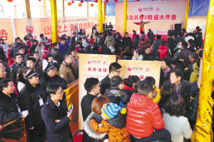 12月20日上午,腾龙名都二期开盘活动在周口大庆路桥南头售楼部举行。当天,天气阴沉,寒风瑟瑟,可是低温降低不了市民追求幸福生活的热情,寒风阻挡不住购房者置业的脚步。8时刚过,腾龙名都售楼部前新搭建的开盘活动大厅就挤满了意向买房的客户,大家或欣赏着丰富多彩的文艺节目,或评论着腾龙名都项目,或盘算着自己心仪的房源,现场气氛热闹而喜庆。9时30分,数筒礼花腾空而起,在空中炸响之后,开盘选房活动正式开始。在工作人员的组织下,客户分组进入售楼部依次选房,选定房源、填写《房号确认单》、签订《腾龙名都二期认购书》……一拨客户满怀希望进去,一拨客户面带笑容出来,选房活动始终在紧张有序地进行。一上午,137套房源成交。