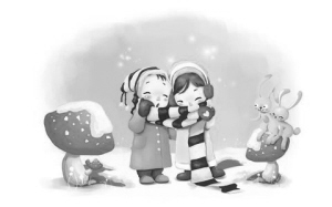 你瞧,小松鼠高兴得觉都睡不着了,天还没亮就起了床,爸爸妈妈都拿它没办法。小白兔来找它玩,大老远就看见了它,忙大喊:“松鼠妹妹!松鼠妹妹!”松鼠这瞧瞧、那看看,就是不见小白兔的影子。小白兔高声地喊:“松鼠妹妹,我在这里!”松鼠还是没有看见小白兔,就以为小白兔穿上了隐身衣,惊奇地问道:“兔姐姐,你的隐身衣真有趣,借我穿穿好吗?”小白兔微笑着说:“我没有穿隐身衣,就站在这里。”小松鼠恍然大悟:“哦,原来是昨天下了一场雪,因为你的毛是白色的,所以,我没看到你。”说完,它们哈哈大笑起来。