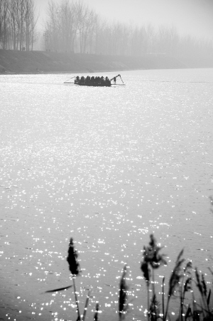 “别急,还在前面。”看到我们失落的表情,摄影记者朱海龙边开车边提醒。十多公里路程后,眼前豁然开朗。冬日的阳光下,平静的沙河水悠游缓和,清亮得可以看到柔波里摇曳的水草,近处偶有一群鸭子游过,远方几艘渔船长篙漫溯,比起喧闹的城市来,这里还是多了一份难得的宁静。更美的是,沙河在这里拐了个大湾,看上去就像舞动的水袖,一下子就使这里的河流变得生动起来,河水也显得更有灵性。