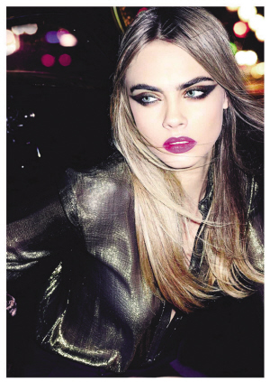 圣罗兰美妆全新圣诞彩妆“金色狂潮”由Cara Delevingne演绎,宛如猎豹般的眼妆配上经典的桃红色双唇,强悍妩媚,闪耀着狂野和优雅的。这样的大面积的眼影,相当具有侵略性。