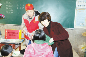 12月26日,周口市市直幼儿园志愿者前往商水县一所乡村小学,为留守儿童送去爱心围巾。孙杰 摄
