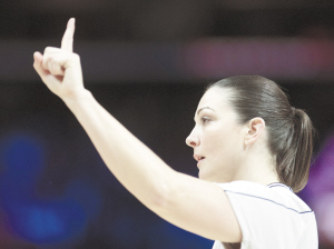 当地时间1月11日,NBA历史上第三位女裁判劳伦·霍尔特坎普执法本场比赛,她是NBA现役两名女裁判之一,于本赛季正式被NBA聘请。当日,在2014-2015赛季NBA常规赛中,洛杉矶快船队主场以90∶104负于迈阿密热火队。新华社记者 杨磊 摄