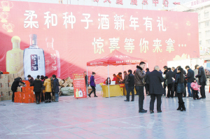 去年以来,我市越来越多的酒企开始重视利用微信、微博等新媒体开展销售活动。“关注我的微信可中奖”是不少商家经常开展的活动之一。图为项城市金种子商贸公司在项城广场为“微友” 发放礼品。