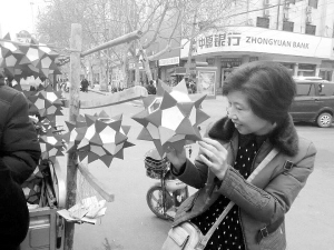 在中州大道上,来自淮阳的李先生在售卖手工花灯,这些花灯是由纸、铁丝、小木板制作而成,简洁、复古、便宜,售价5元。一位购买手工花灯的市民说,看到这些灯,瞬间勾起了儿时的美好回忆。同样,商水固墙76岁老农智留成用秸秆、纸、彩色鸡毛等制成的“鱼”灯也受到市民热捧。市民黄女士选购手工花灯时说:“我小时候就买过这种花灯,到现在还记忆犹新,今天正好遇见了,怎么也得给孩子买一个。”