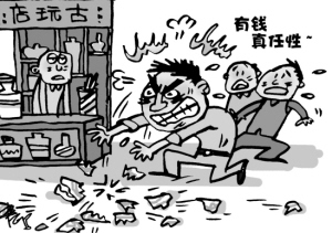 对于此男此举,笔者只能引用时下流行语感叹:“有钱就是任性。”新闻中提到,砸瓶男子大约50多岁,开始之时被这对精美青花瓷瓶所吸引,那想必是个爱瓷之人。爱瓶之人以砸瓶告终,应该是一时冲动而为之。