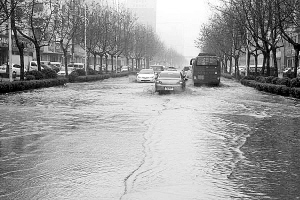 3月17日上午,记者在建安北路看到,这里积水严重,人车难行,汽车经过时激起大片水花。附近居民直呼“出门即看海”。晚报记者 朱东一 摄