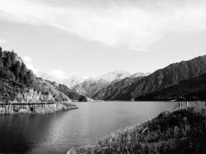 下了车,视野里一片澄明,眼睛一时半会儿承接不住这耀眼的明净。作家们一阵欢呼,眼前就是传说中的天池了。想起小时候,村里年长的白胡子老爷爷,摇着破蒲扇,就着如水的月光,讲美丽瑶池的故事。天宫中一个叫西天王母的华贵夫人,云游时,看中天山腰这一池好水,就带一群仙女飘下界来,在碧水中洗浴、嬉戏。有那么一阵子,幼小的我,把瑶池想象成村里的那口大坑,我每天端着大碗坐在坑边吃饭,天上出星星了还不回家。幻想着,水里会咕嘟嘟冒出一群小仙女,手拉手,陪我在星光下跳圈圈舞。
