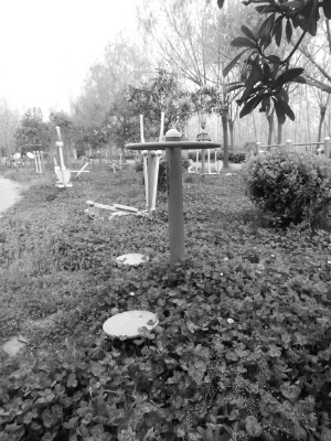 4月12日,记者看到周口市区颍河东路一处健身小广场内杂草丛生,20多台健身器材上布满灰尘。路经此处的一位市民告诉记者:“这里距离居民区较远,来此健身的人比较少。看着这么多近乎崭新的健身器材被闲置在这儿,感觉真是太浪费了。”