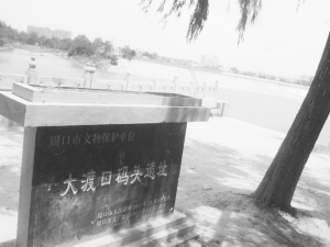 本报讯 近日,本报读者王羡荣联系记者称,大渡口码头遗址碑立的位置不对。大渡口码头遗址不在荷花路(原名“新街”)北磨盘山渡口处,而是位于老街对面的河堤处。