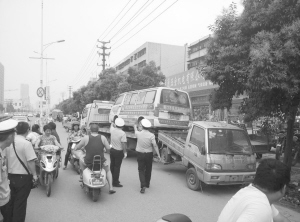 7月10日上午,荷花路派出所交巡警大队民警与市交警支队机关干警一起,对辖区内的10辆“僵尸车”进行集中清理。在荷花市场南门交通大道的停车位上有两辆“僵尸车”。记者看到,一辆小客车的4个轮胎干瘪,车身锈迹斑斑。荷花路派出所交巡警大队教导员赵其学说:“这辆小客车停在这里至少有两年时间。可能是因为该车是黄牌车再加上多年未审,车主觉得其已无用,便停留至今。”随后,警方用拖车将这辆小客车和一辆小货车拖走(如图)。