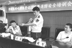 7月19日,郸城县公安局召集全县网吧业主,举行了关于上网实名登记制度和消防安全的培训活动,来自县城及19个乡镇的近百名网吧业主集体宣誓严格执行实名登记制度,拦截来自网络的不安定因素。这期间,消防官兵现场演示了灭火器的使用方法,网警要求网吧业主义务为上网人员发放执法监督卡。