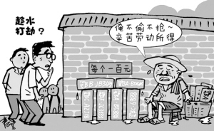 城里可以“看海”固然浪漫,代价就是车牌很容易给冲掉。没想到,车牌丢了还催生出一门生意——捡车牌赚外快。有人说这是“趁水打劫”,有人说这是劳动所得,听上去还真是各有道理,难辨对错。这让我想起了韩寒电影《后会无期》里那句经典对白:“小孩子才分对错,成年人只看利弊。”老人家从齐腰深的污水中捞起车牌,省了你去车管所排队上牌,而且所收的钱也大大低于补牌的费用,这对于车主来说,利应该远大于弊。