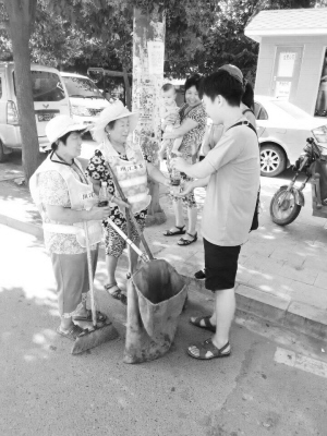 又是一年最热时,在马路上工作的交警和环卫工可谓备受煎熬。有感于交警和环卫工的辛苦,7月29日,爱心学校和公益机构以送瓶装矿泉水的方式,向他们表达了自己的敬意。晚报记者 郭坤 张燕 摄