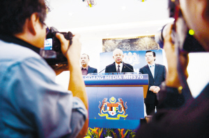 当日,马来西亚总理纳吉布宣布,7月29日在法属留尼汪岛发现的飞机残骸经鉴定属于马航MH370航班客机。新华社发